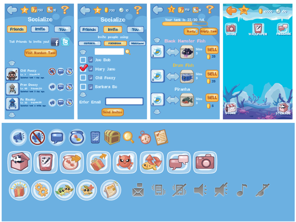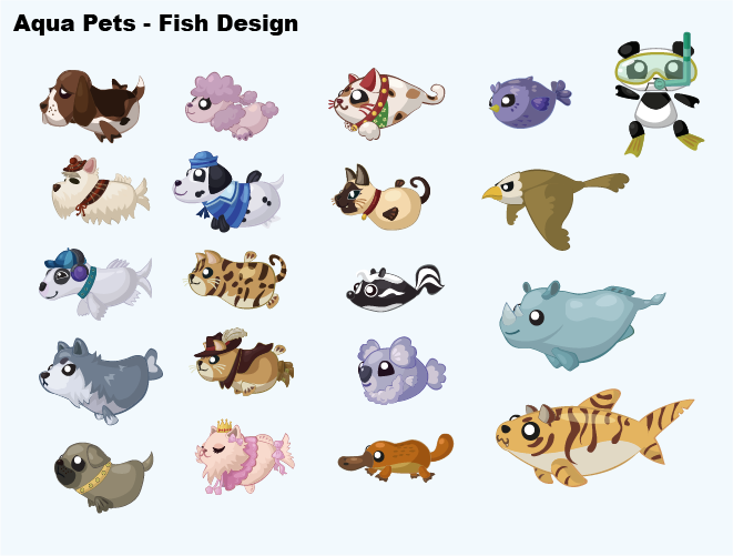 Aqua Pets is a casual collection game and my very first project. As the first artist on a small team, I collaborated closely with the Creative Director to build the game from the ground up. My contributions included concept art, UI design, and promotional artwork.